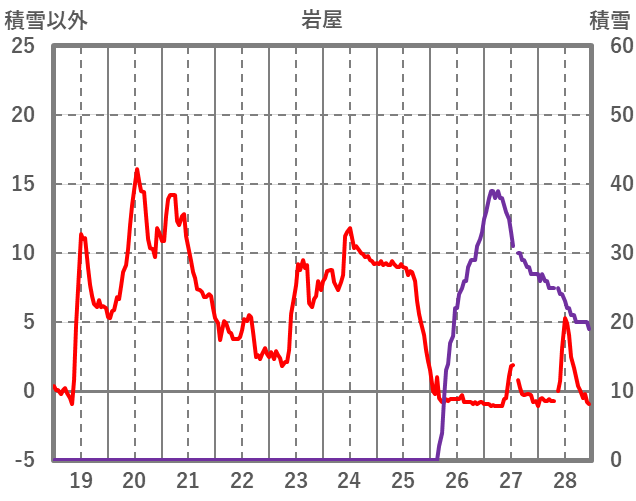 | 日 | 時 | 気温 | 降水 | 風向/風速 | 日照 | 積雪 | 降雪 |