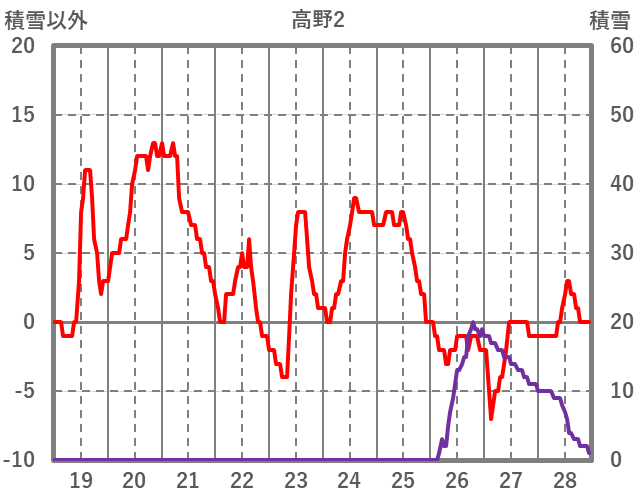 | 日 | 時 | 気温 | 降水 | 風向/風速 | 日照 | 積雪 | 降雪 |