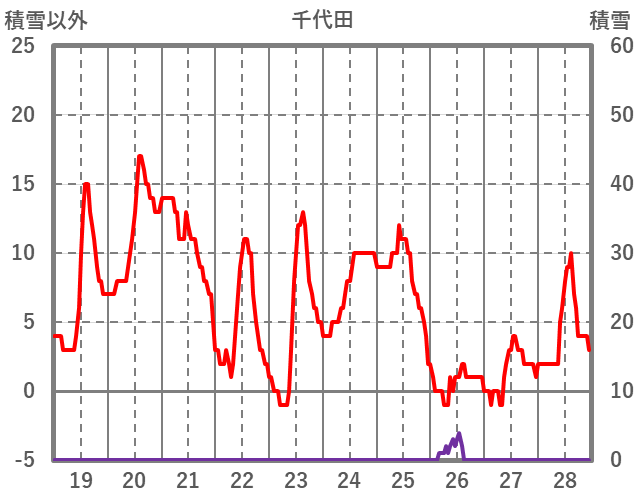 | 日 | 時 | 気温 | 降水 | 風向/風速 | 日照 | 積雪 | 降雪 |