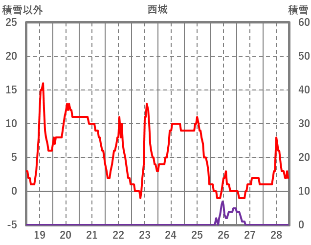 | 日 | 時 | 気温 | 降水 | 風向/風速 | 日照 | 積雪 | 降雪 |