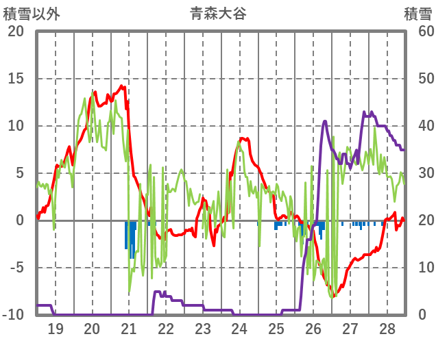 | 日 | 時 | 気温 | 降水 | 風向/風速 | 日照 | 積雪 | 降雪 |