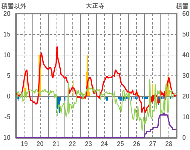 | 日 | 時 | 気温 | 降水 | 風向/風速 | 日照 | 積雪 | 降雪 |