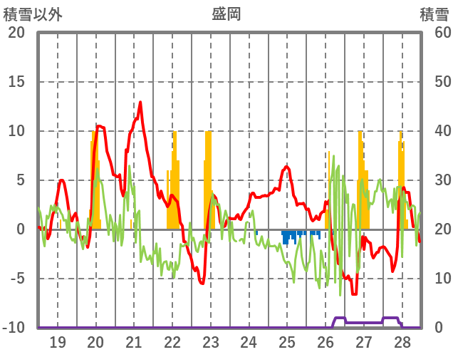 | 日 | 時 | 気温 | 降水 | 風向/風速 | 日照 | 積雪 | 降雪 |