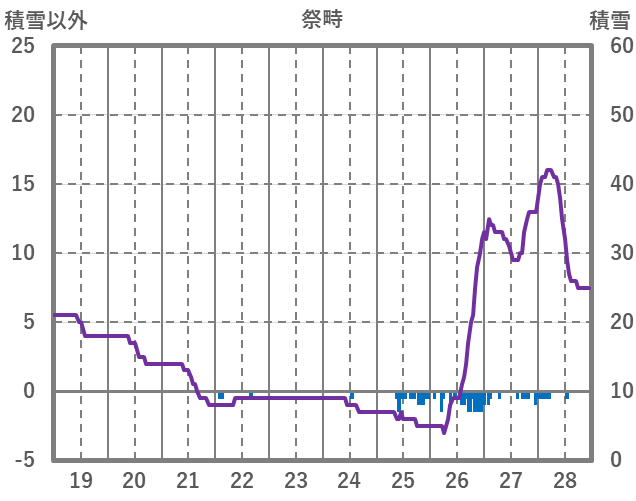 | 日 | 時 | 気温 | 降水 | 風向/風速 | 日照 | 積雪 | 降雪 |
