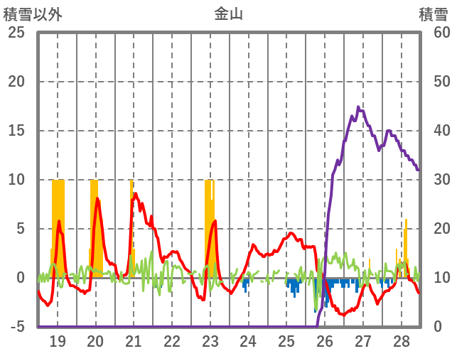 | 日 | 時 | 気温 | 降水 | 風向/風速 | 日照 | 積雪 | 降雪 |