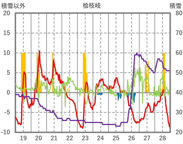 | 日 | 時 | 気温 | 降水 | 風向/風速 | 日照 | 積雪 | 降雪 |