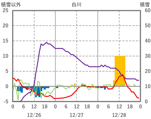 | 日 | 時 | 気温 | 降水 | 風向/風速 | 日照 | 積雪 | 降雪 |