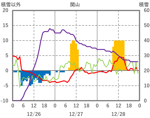 | 日 | 時 | 気温 | 降水 | 風向/風速 | 日照 | 積雪 | 降雪 |
