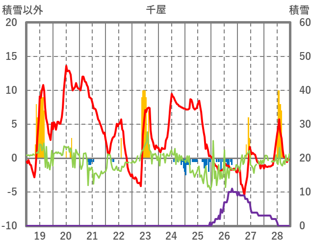 | 日 | 時 | 気温 | 降水 | 風向/風速 | 日照 | 積雪 | 降雪 |