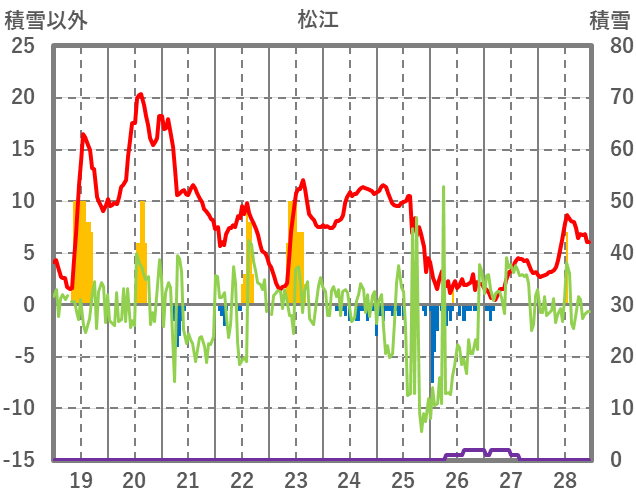 | 日 | 時 | 気温 | 降水 | 風向/風速 | 日照 | 積雪 | 降雪 |