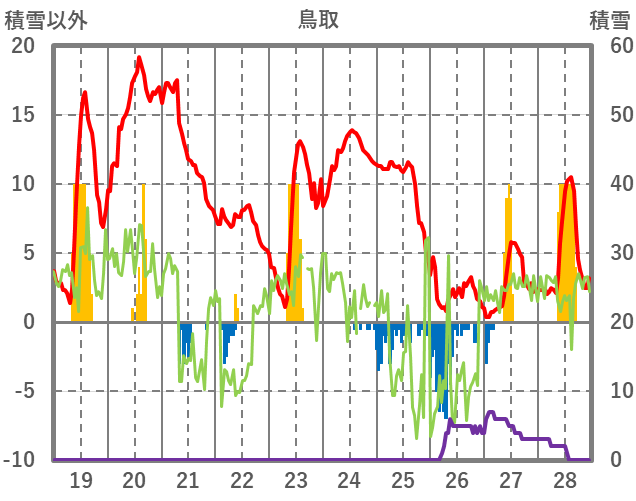 | 日 | 時 | 気温 | 降水 | 風向/風速 | 日照 | 積雪 | 降雪 |