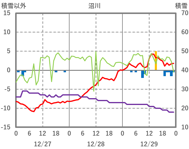 | 日 | 時 | 気温 | 降水 | 風向/風速 | 日照 | 積雪 | 降雪 |