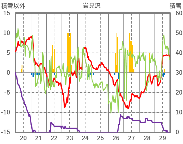 | 日 | 時 | 気温 | 降水 | 風向/風速 | 日照 | 積雪 | 降雪 |