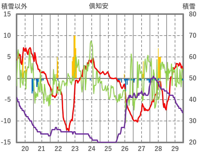 | 日 | 時 | 気温 | 降水 | 風向/風速 | 日照 | 積雪 | 降雪 |