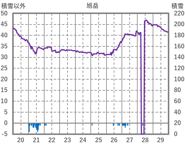 | 日 | 時 | 気温 | 降水 | 風向/風速 | 日照 | 積雪 | 降雪 |