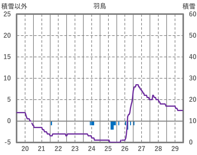 | 日 | 時 | 気温 | 降水 | 風向/風速 | 日照 | 積雪 | 降雪 |