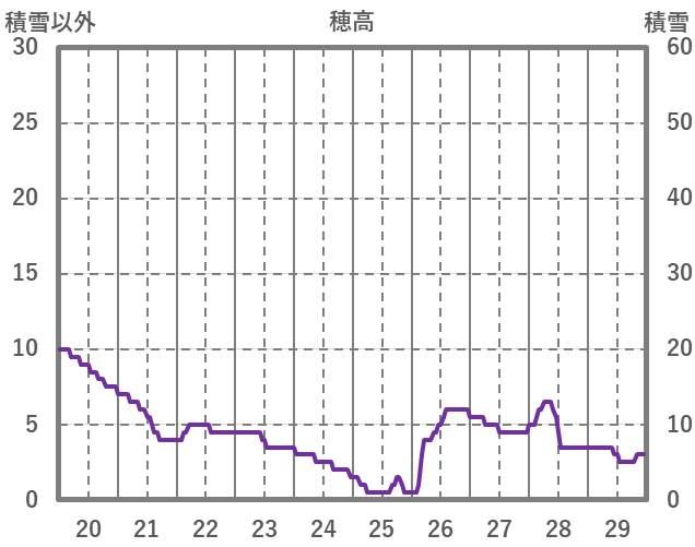 | 日 | 時 | 気温 | 降水 | 風向/風速 | 日照 | 積雪 | 降雪 |