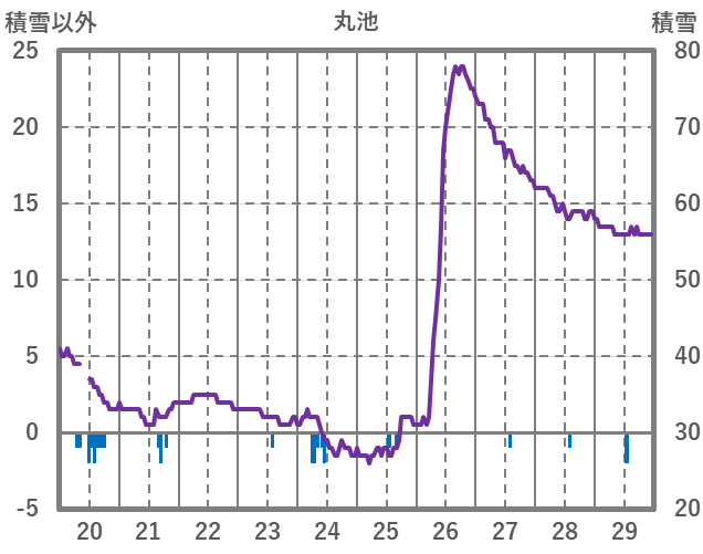 | 日 | 時 | 気温 | 降水 | 風向/風速 | 日照 | 積雪 | 降雪 |