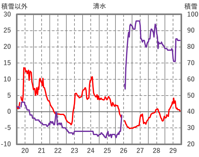 | 日 | 時 | 気温 | 降水 | 風向/風速 | 日照 | 積雪 | 降雪 |
