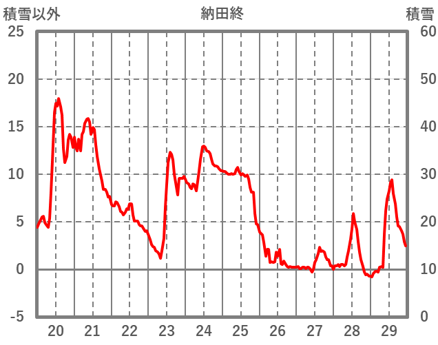 | 日 | 時 | 気温 | 降水 | 風向/風速 | 日照 | 積雪 | 降雪 |