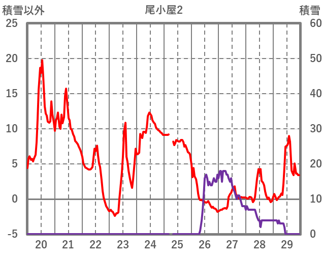 | 日 | 時 | 気温 | 降水 | 風向/風速 | 日照 | 積雪 | 降雪 |