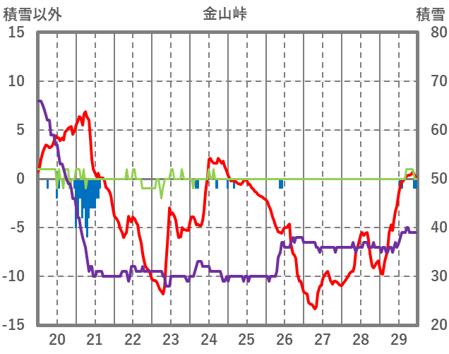 | 日 | 時 | 気温 | 降水 | 風向/風速 | 日照 | 積雪 | 降雪 |