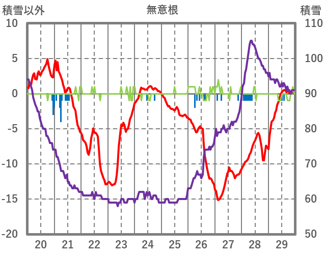 | 日 | 時 | 気温 | 降水 | 風向/風速 | 日照 | 積雪 | 降雪 |