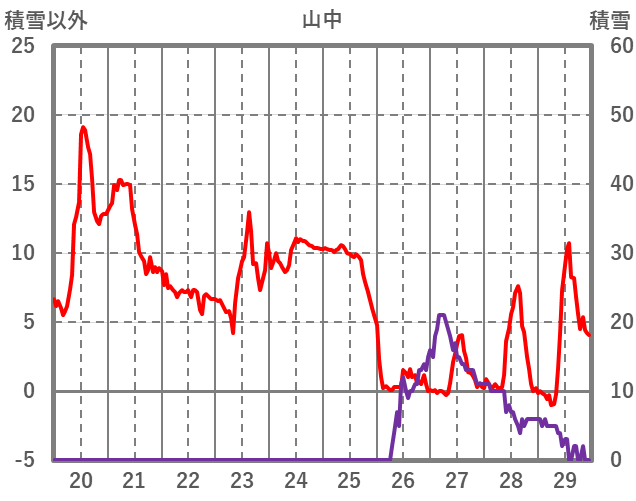 | 日 | 時 | 気温 | 降水 | 風向/風速 | 日照 | 積雪 | 降雪 |