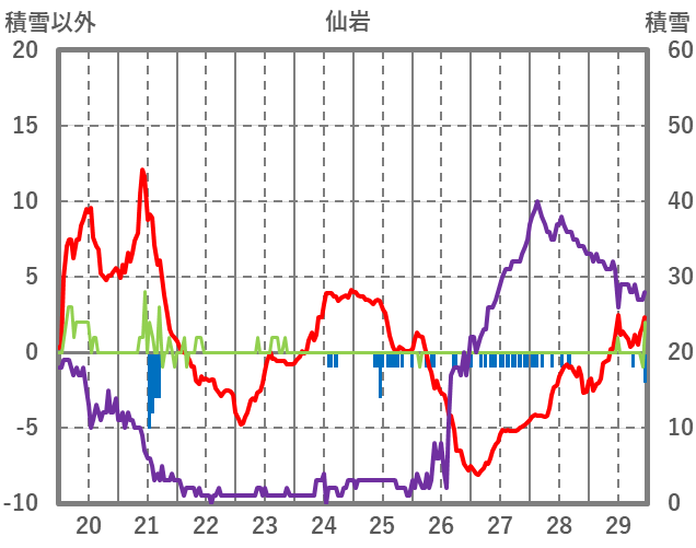 | 日 | 時 | 気温 | 降水 | 風向/風速 | 日照 | 積雪 | 降雪 |