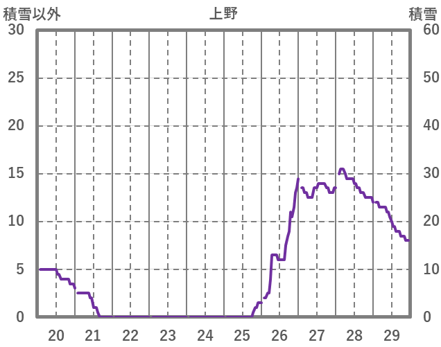 | 日 | 時 | 気温 | 降水 | 風向/風速 | 日照 | 積雪 | 降雪 |