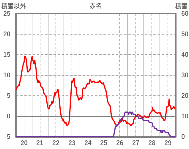 | 日 | 時 | 気温 | 降水 | 風向/風速 | 日照 | 積雪 | 降雪 |