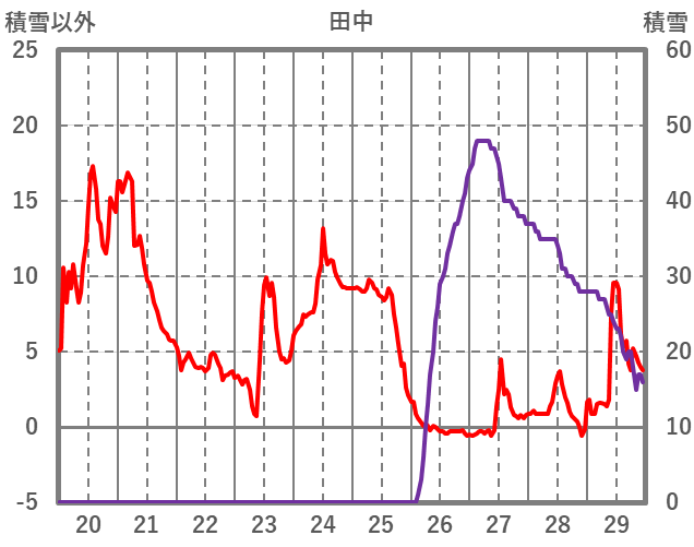 | 日 | 時 | 気温 | 降水 | 風向/風速 | 日照 | 積雪 | 降雪 |