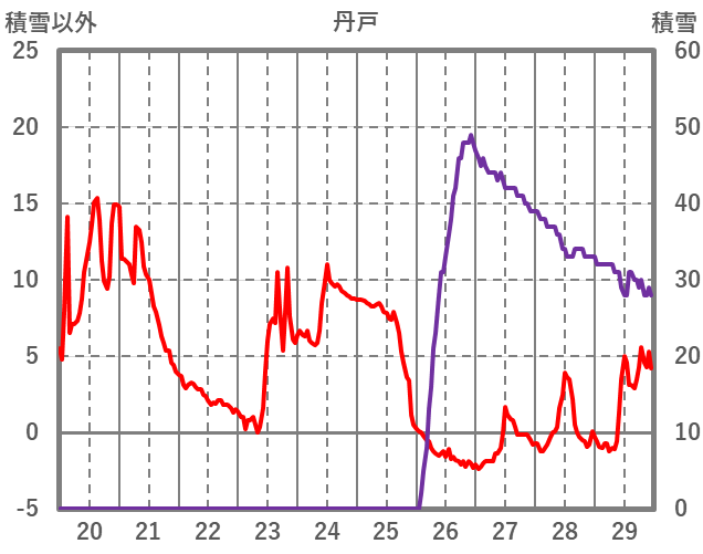 | 日 | 時 | 気温 | 降水 | 風向/風速 | 日照 | 積雪 | 降雪 |