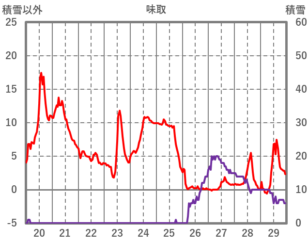 | 日 | 時 | 気温 | 降水 | 風向/風速 | 日照 | 積雪 | 降雪 |