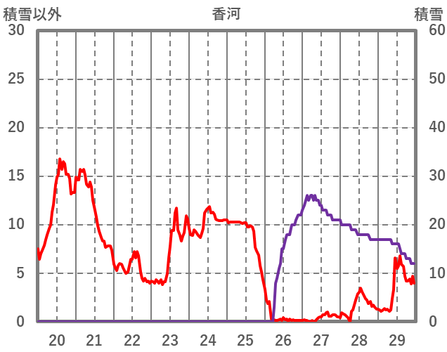 | 日 | 時 | 気温 | 降水 | 風向/風速 | 日照 | 積雪 | 降雪 |