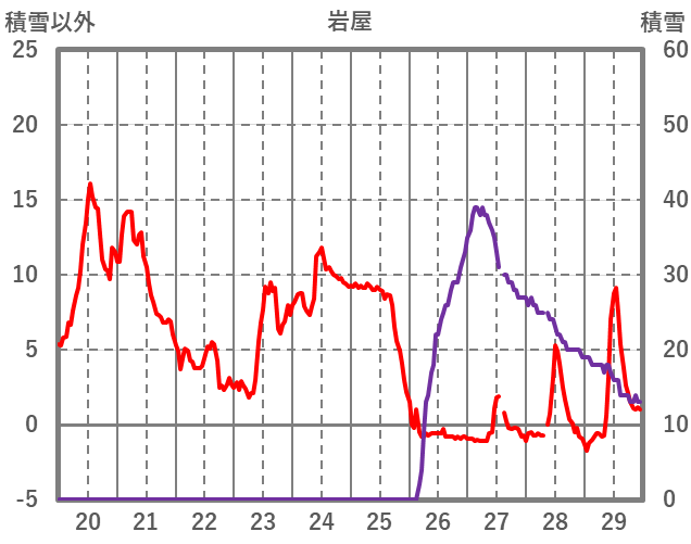 | 日 | 時 | 気温 | 降水 | 風向/風速 | 日照 | 積雪 | 降雪 |
