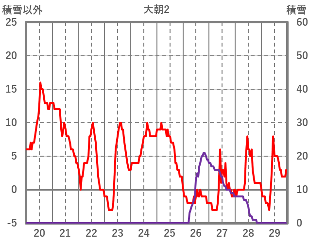 | 日 | 時 | 気温 | 降水 | 風向/風速 | 日照 | 積雪 | 降雪 |