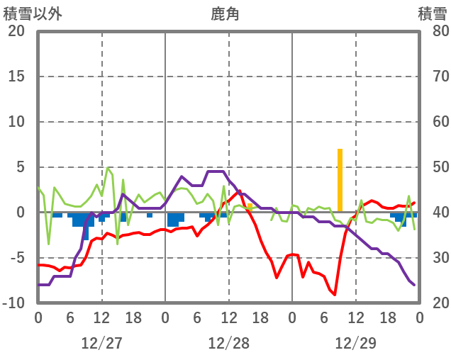 | 日 | 時 | 気温 | 降水 | 風向/風速 | 日照 | 積雪 | 降雪 |