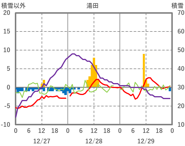 | 日 | 時 | 気温 | 降水 | 風向/風速 | 日照 | 積雪 | 降雪 |