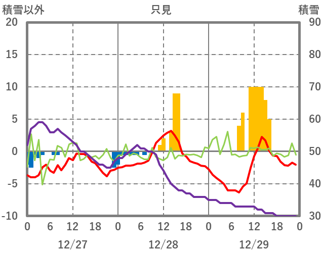 | 日 | 時 | 気温 | 降水 | 風向/風速 | 日照 | 積雪 | 降雪 |