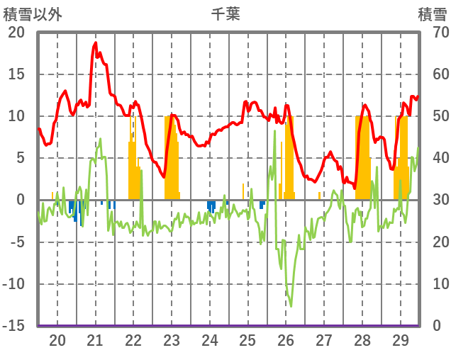 | 日 | 時 | 気温 | 降水 | 風向/風速 | 日照 | 積雪 | 降雪 |