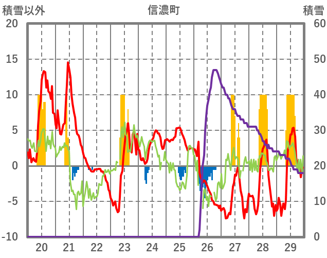 | 日 | 時 | 気温 | 降水 | 風向/風速 | 日照 | 積雪 | 降雪 |