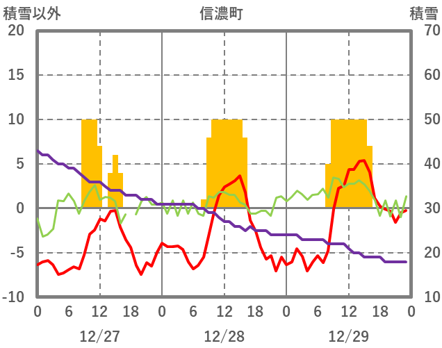 | 日 | 時 | 気温 | 降水 | 風向/風速 | 日照 | 積雪 | 降雪 |