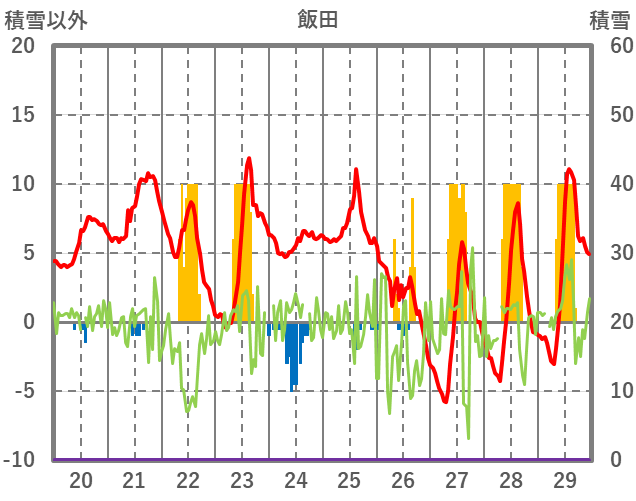 | 日 | 時 | 気温 | 降水 | 風向/風速 | 日照 | 積雪 | 降雪 |