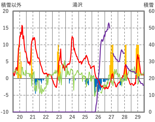 | 日 | 時 | 気温 | 降水 | 風向/風速 | 日照 | 積雪 | 降雪 |