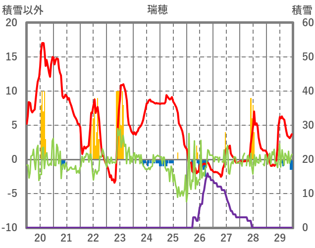 | 日 | 時 | 気温 | 降水 | 風向/風速 | 日照 | 積雪 | 降雪 |
