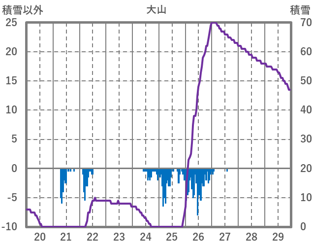 | 日 | 時 | 気温 | 降水 | 風向/風速 | 日照 | 積雪 | 降雪 |