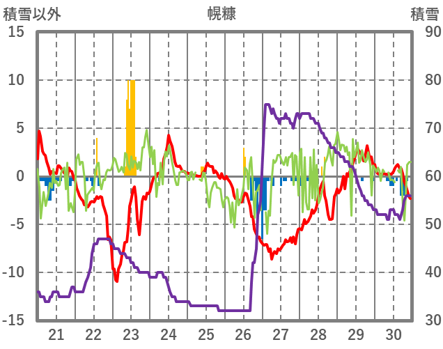 | 日 | 時 | 気温 | 降水 | 風向/風速 | 日照 | 積雪 | 降雪 |