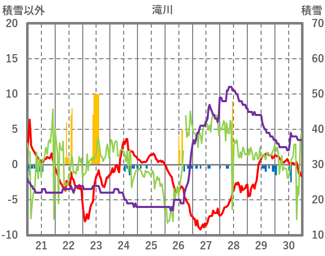 | 日 | 時 | 気温 | 降水 | 風向/風速 | 日照 | 積雪 | 降雪 |