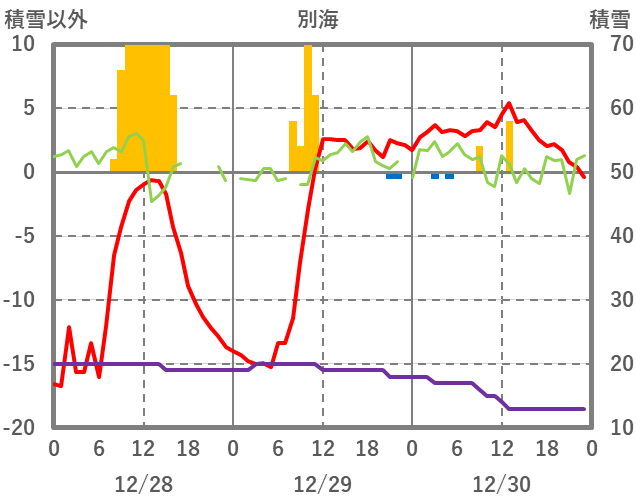 | 日 | 時 | 気温 | 降水 | 風向/風速 | 日照 | 積雪 | 降雪 |